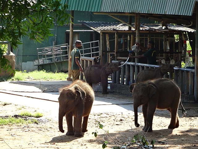 Udawalawe Elephant Transit Home is an orphanage for elephants located within the Udawalawe National Park in Sri Lanka. The transit home was established in 1995 with the aim of providing a safe haven for orphaned elephant calves and rehabilitating them for release back into the wild.